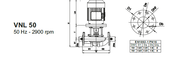 Насоси VNL, є одноступеневими відцентровими насосами низького тиску компактної конструкції з під'єднаним