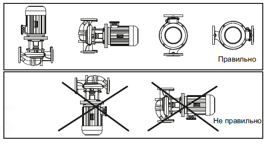 двигуном. Корпус насоса має інлайн-конструкцію, тобто фланці всмоктувальної і напірної сторони лежать на одній