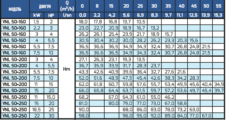 Насоси VNL, є одноступеневими відцентровими насосами низького тиску компактної конструкції з під'єднаним
